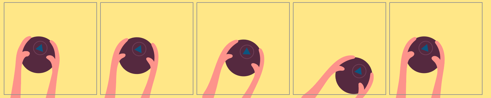 Frames were initially sketched on paper, then vectorized in Adobe Illustrator as individual art boards, then finally loaded into Adobe Photoshop as layers and exported as an animated gif.