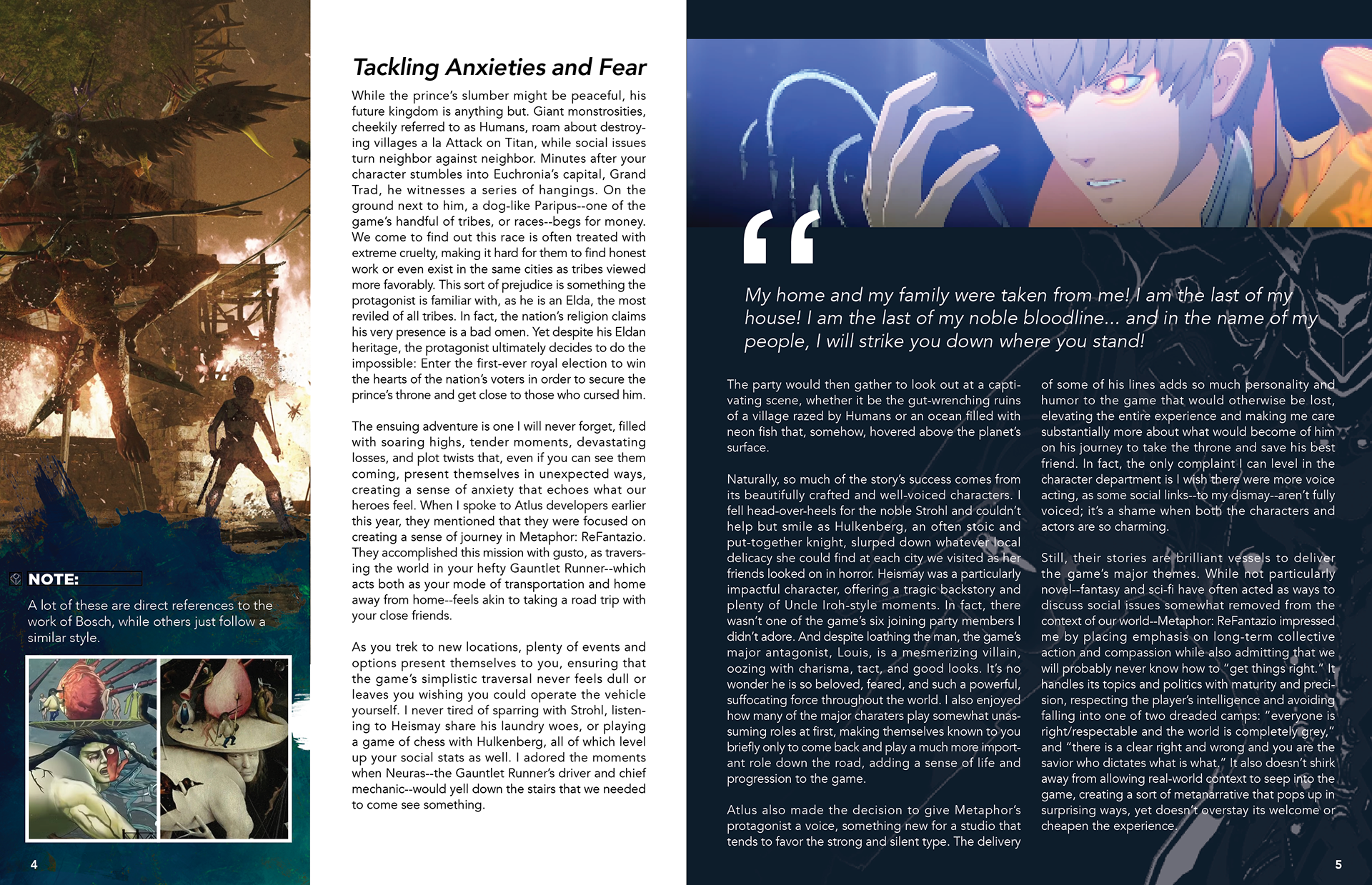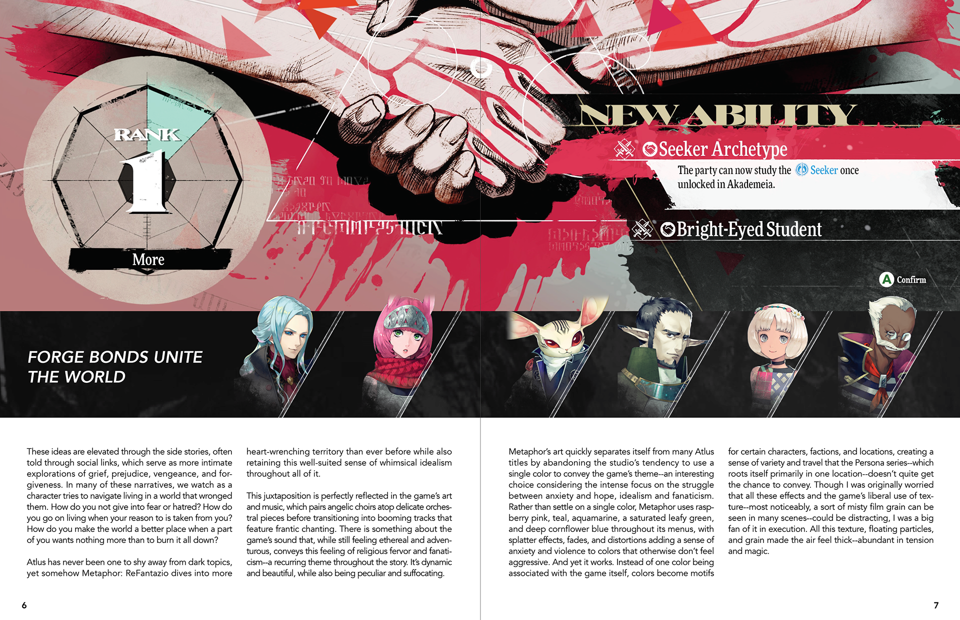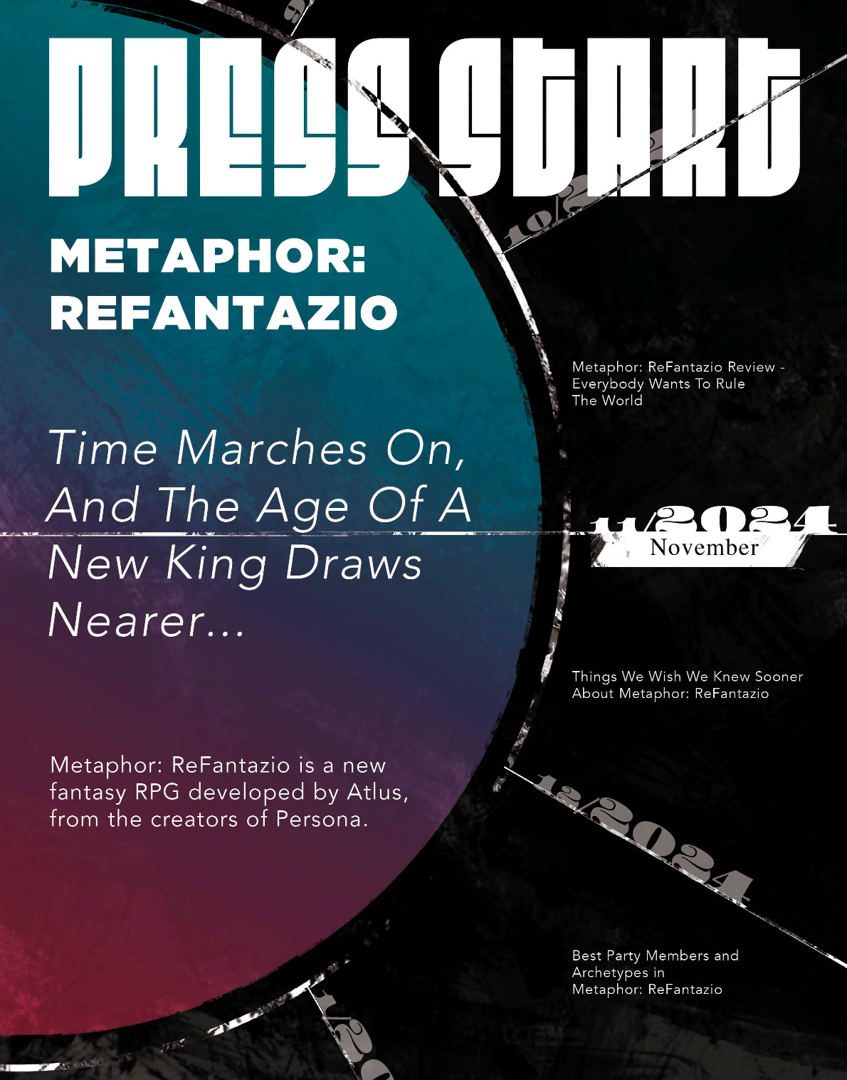 For this project I art directed and designed a magazine around a topic of my choosing. The topic I ended up deciding upon for this project was a recently released video game I was quite interested in at the time named “MetaphorReFantazio.” I was instructed to find 3 articles online for usage in filling out the pages of the magazine. The articles I found were a combination of reviews and advice for people playing the game, which I felt adequately mimicked that of the traditional video game magazines I was attempting to replicate.