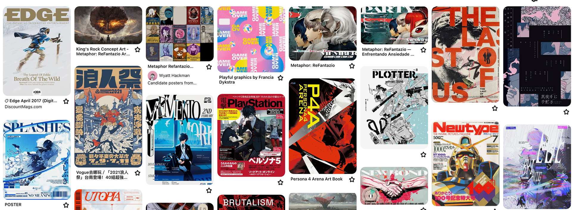 I experimented quite a bit with my page layouts, although largely sticking to a column grid to keep the design from feeling too messy as Metaphor's interfaces and visual design often was quite maximalist. I experimented with two different cover designs, one with a greater image focus and another with a more typographic focus. I moved forward with the image-focused design as I, as well as my peers, felt as though it would catch a viewer's eye better.