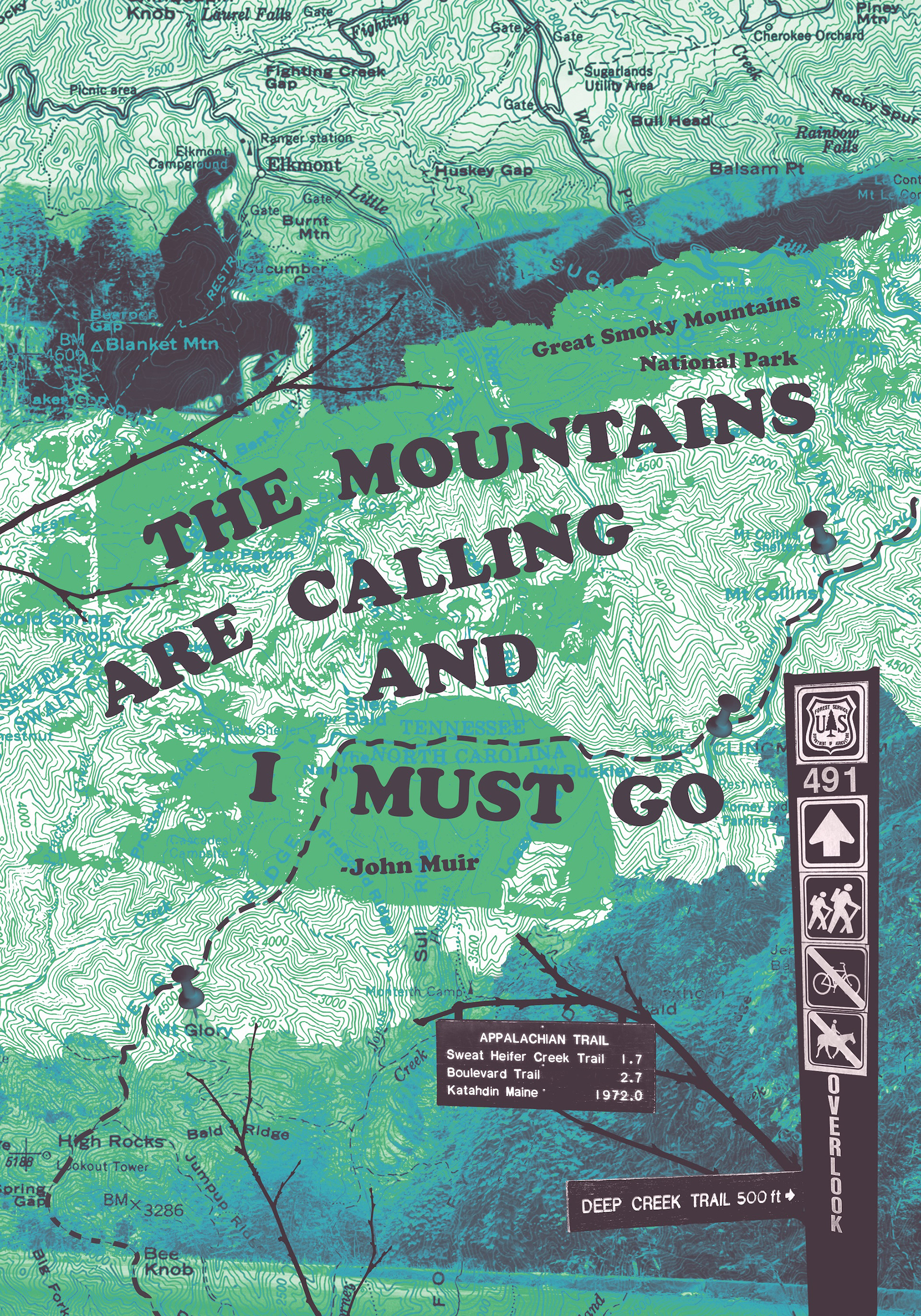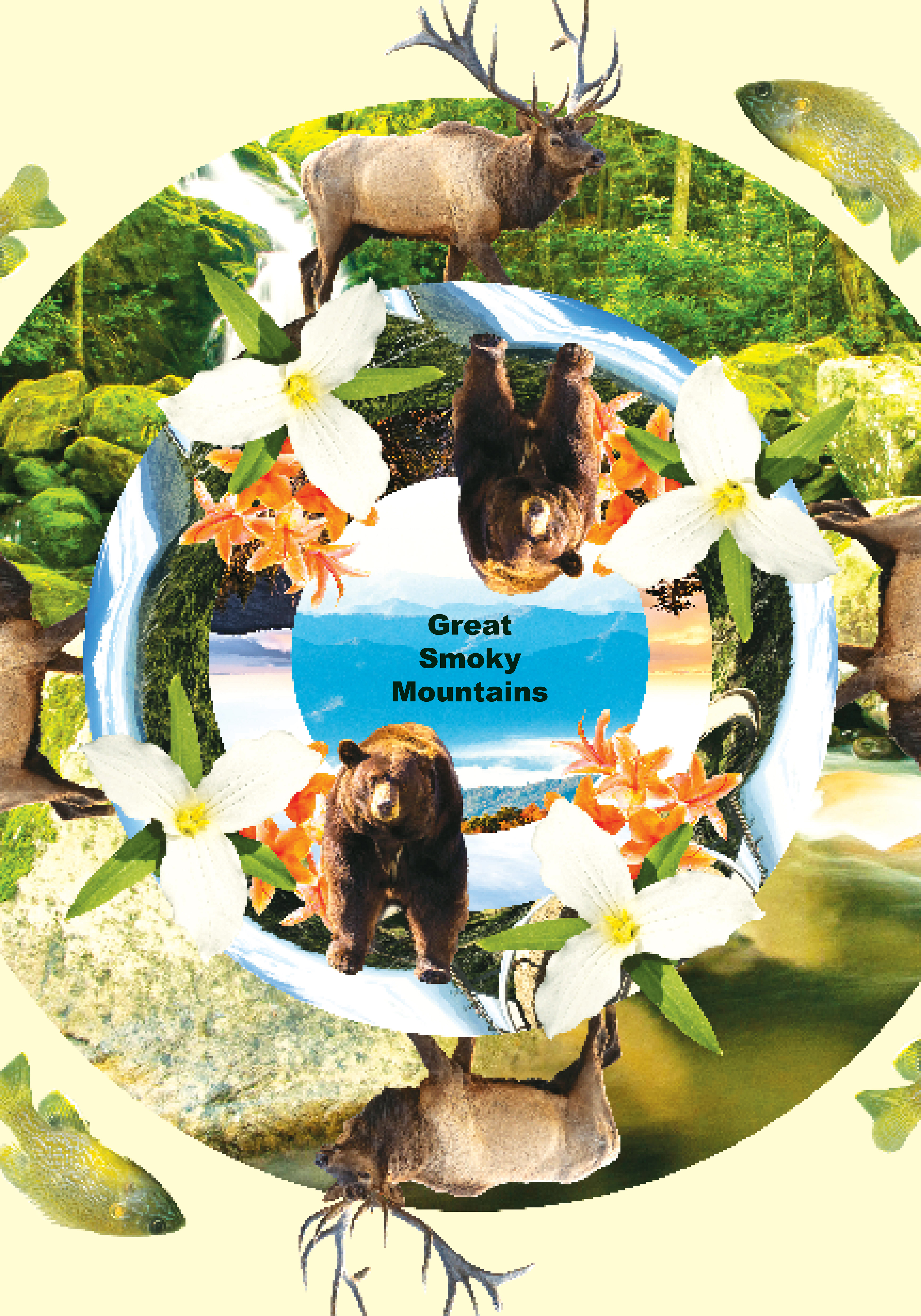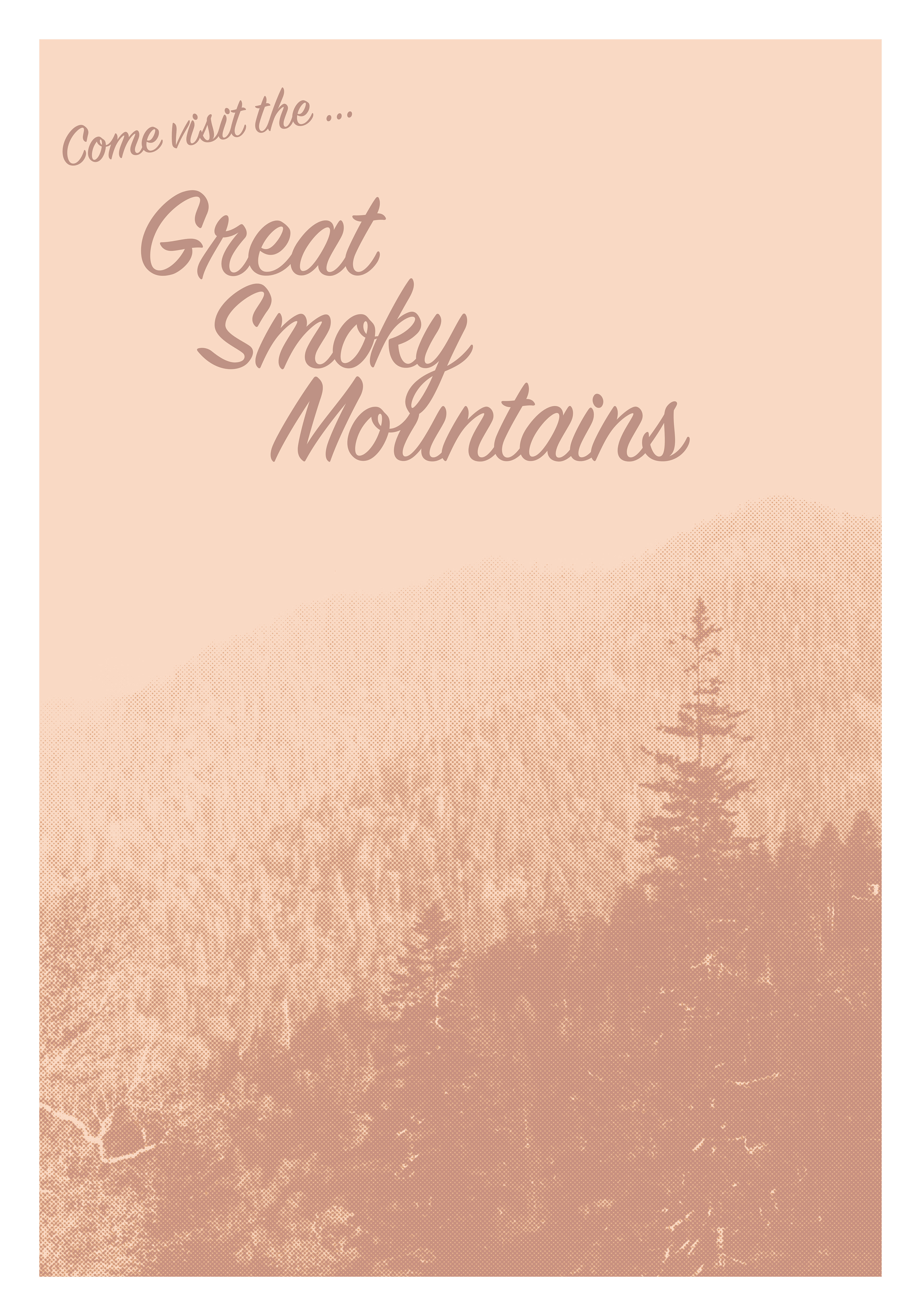 Created and selected for the 2025 United States International Poster Biennial competition for the student National Park poster category. My chosen park was the Great Smoky Mountains National Park. With my design, I wanted to highlight the scenic views and striking topography and incorporated historical park maps to help illustrate this concept.