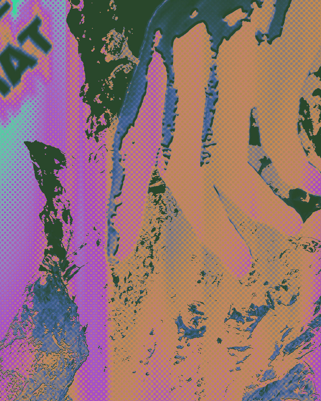 The imagery was created through a process of experimental image studies. I first created a matrix of various materials I had access to, followed by an action. I then randomly selected four materials and action pairings and attempted to create as many interesting forms as I could in about an hour. The material and action pairing that I went forward with for this poster was "twist" and "bubblewrap."